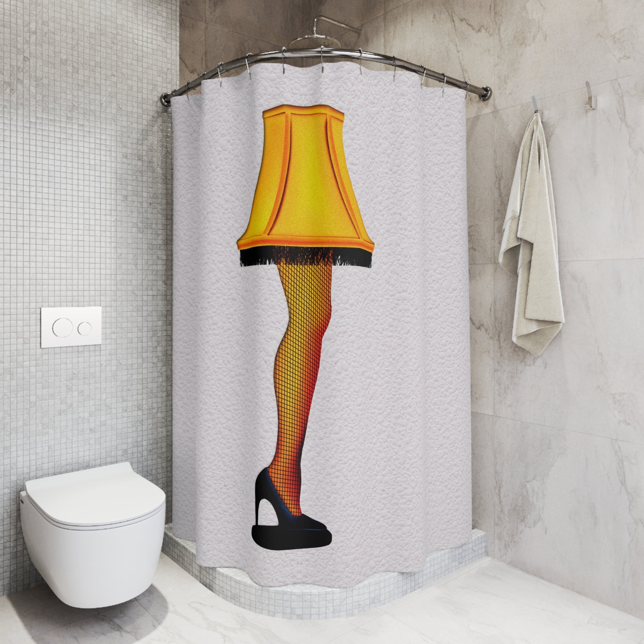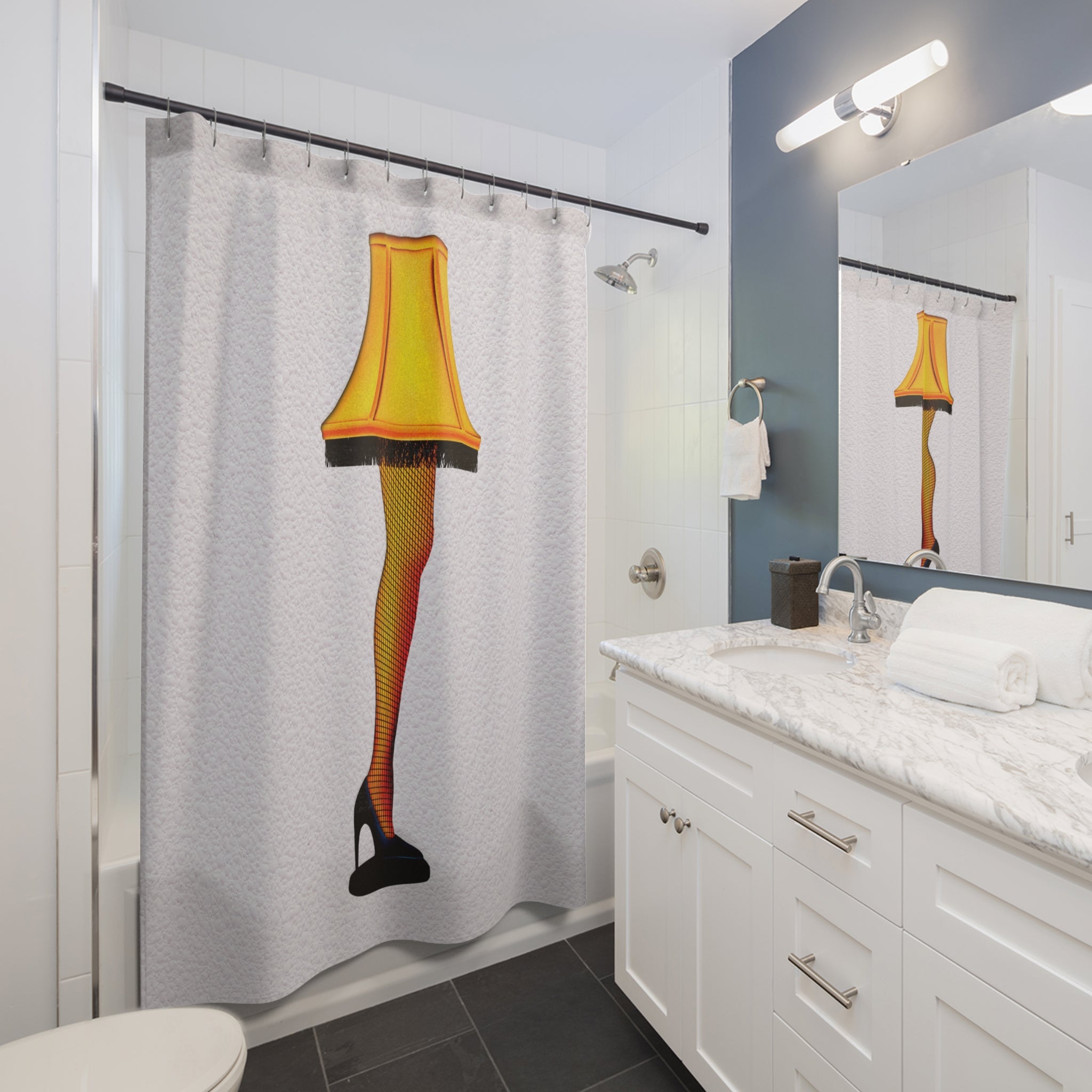 It's the classic leg lamp for the bathroom! This hand-illustrated shower curtain is sure to help get you clean and in the holiday spirit. Festive and fun home decor.