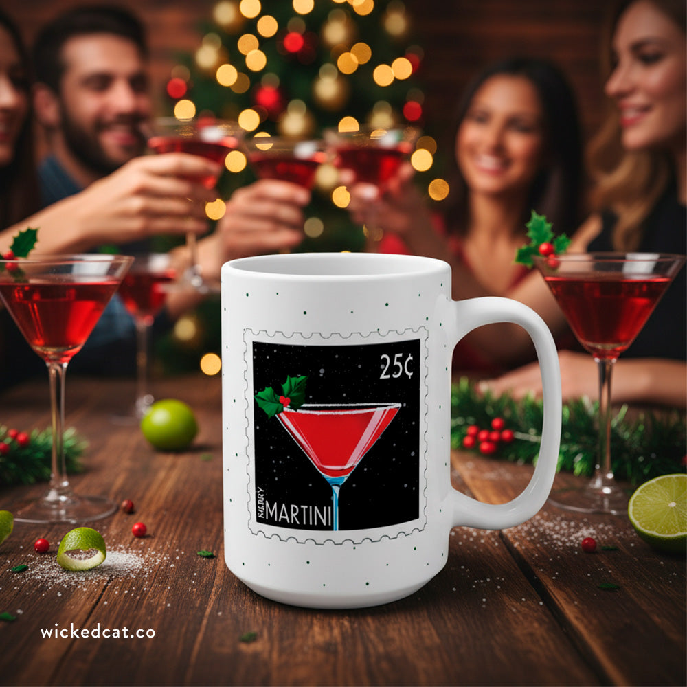 Merry Martini Postage Stamp Christmas Mug 15oz