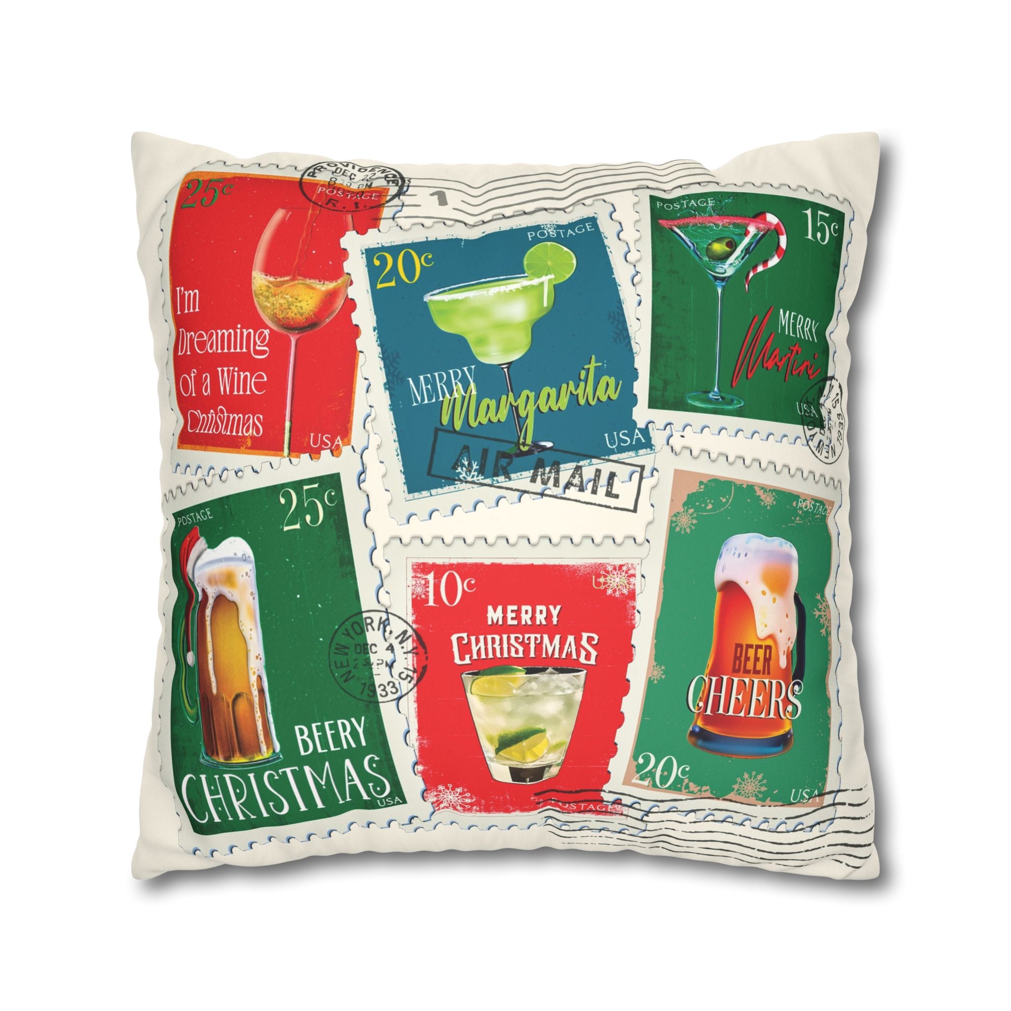 Christmas Cocktail Stamps Faux Suede Pillow Cover
