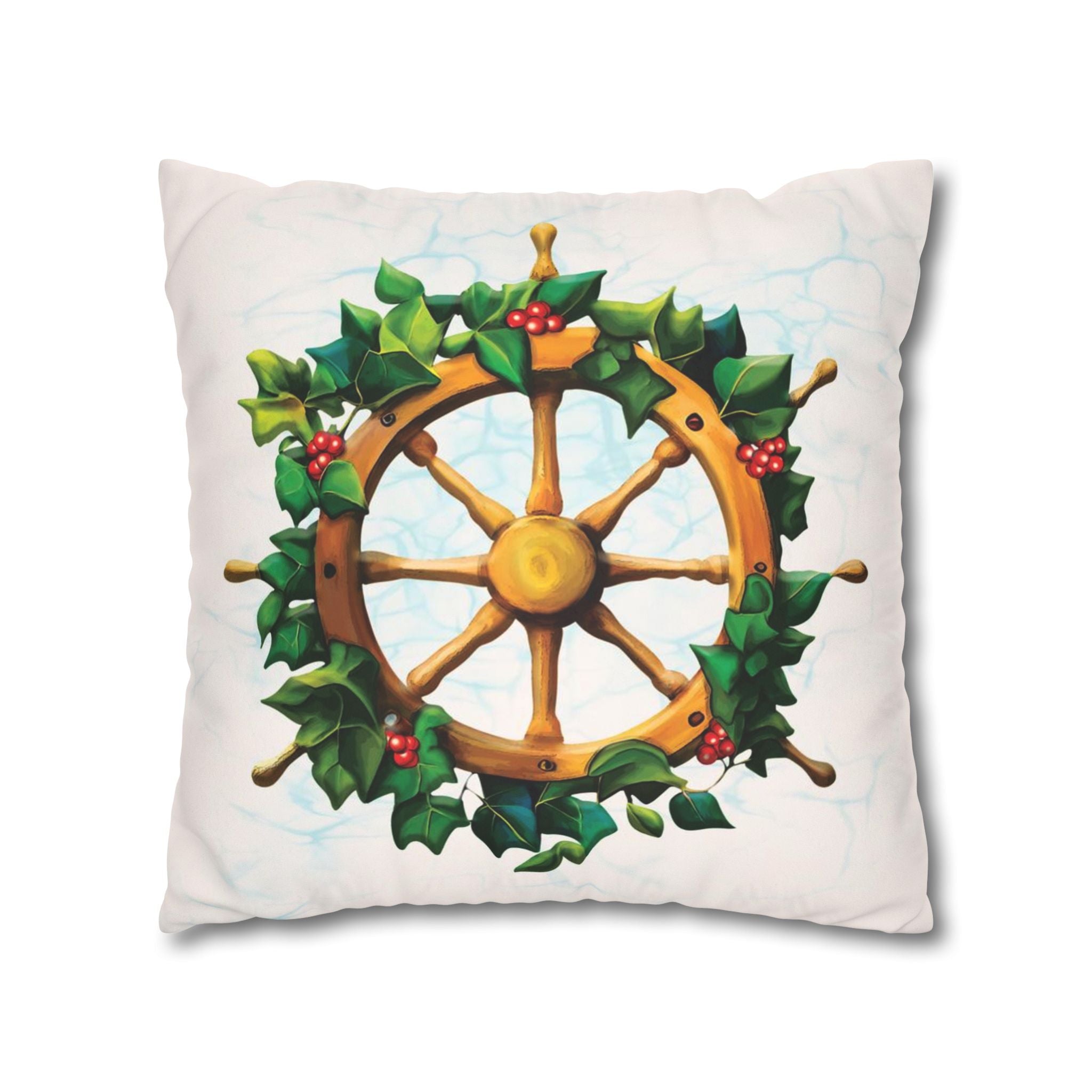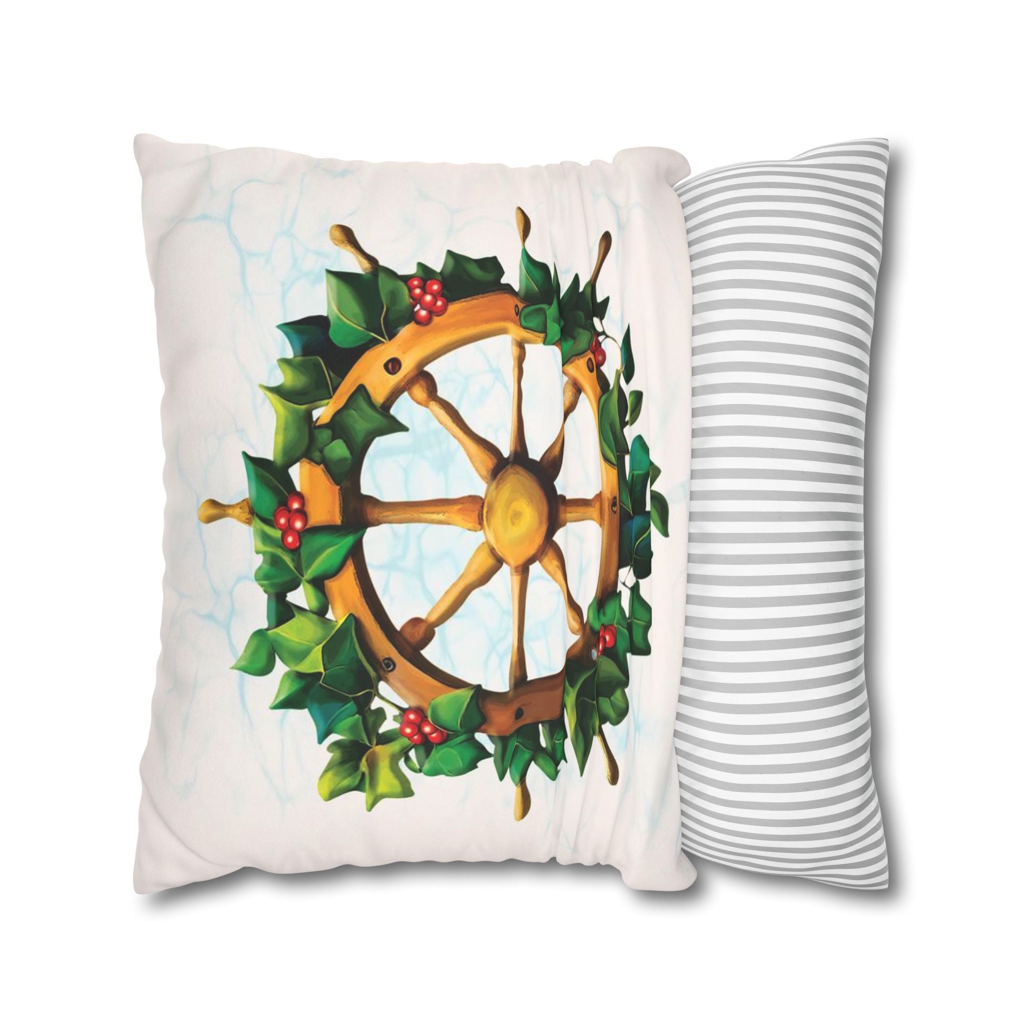 Coastal Christmas Nautical Wheel Faux Suede Pillow Cover