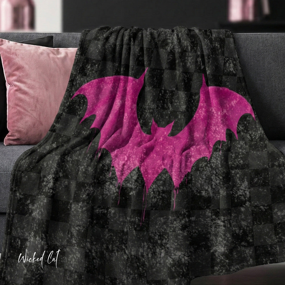 Black & Pink Bat Checkered Decorative Throw Blanket