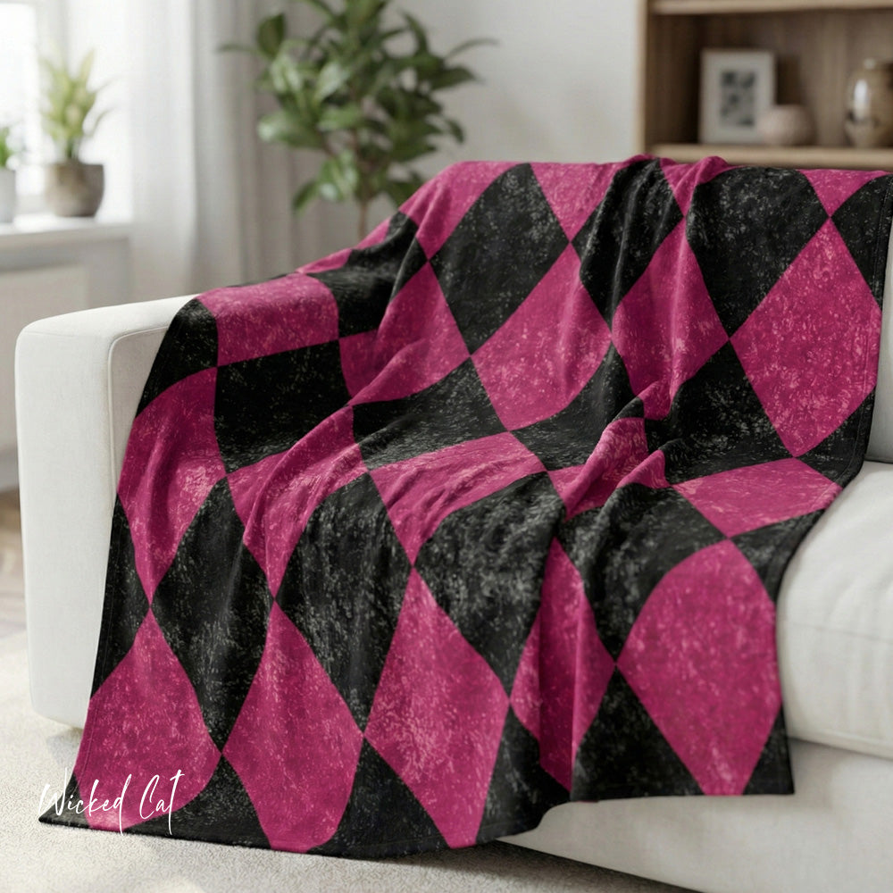 Add a vibrant pop of color with this soft pink and black, Harlequin style throw. Transform your home into a cozy retreat with our luxurious Crushed Velvet Throw Blanket. This decorative blanket combines eye-catching style with incredible comfort, making it the perfect accent for your sofa, bed, or armchair.