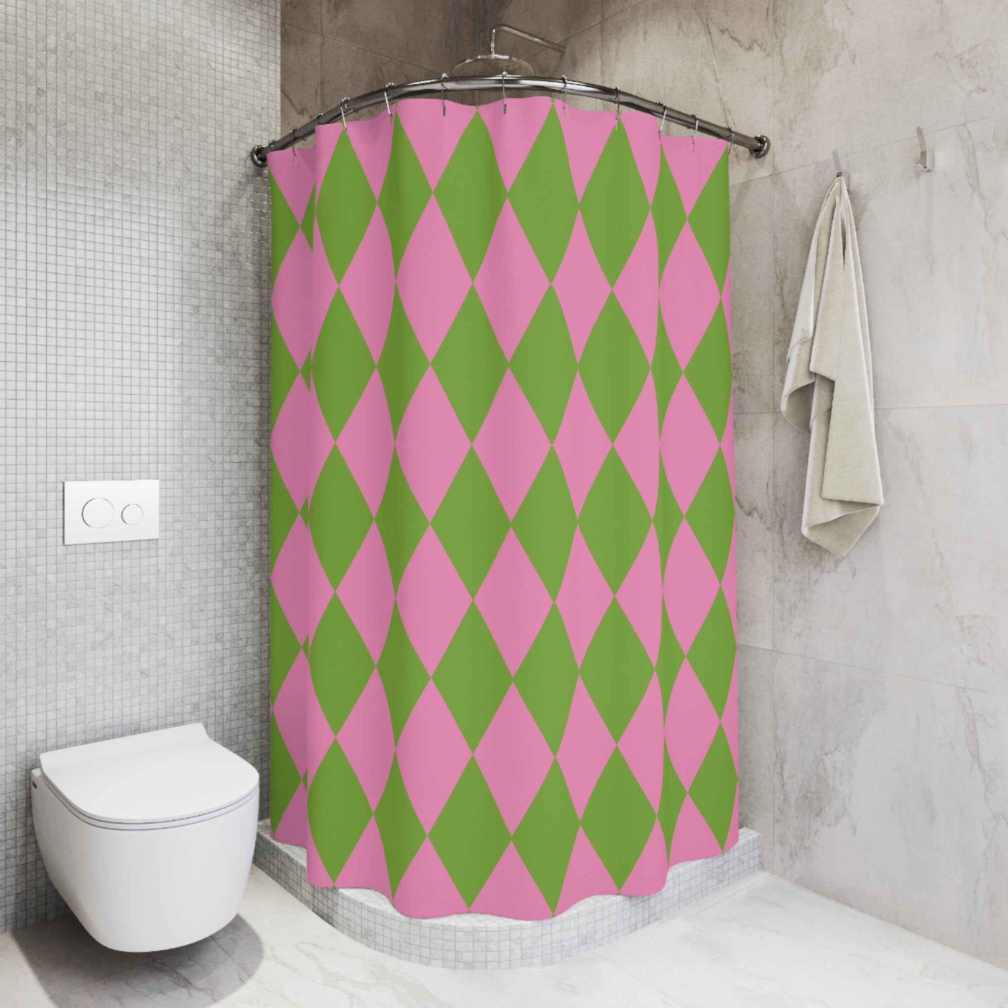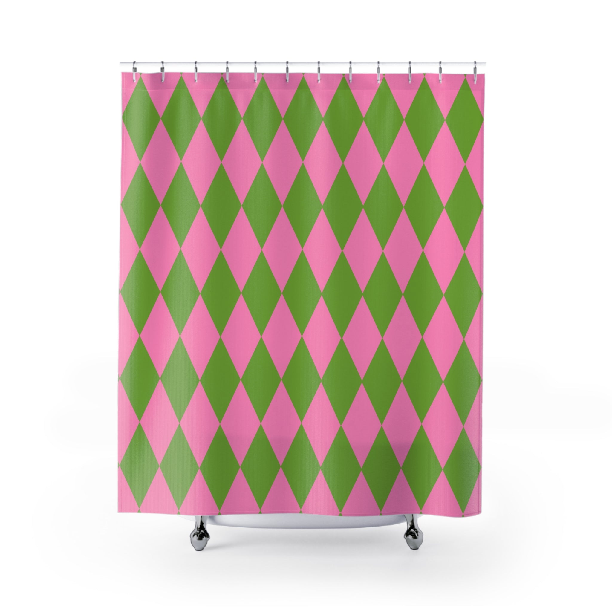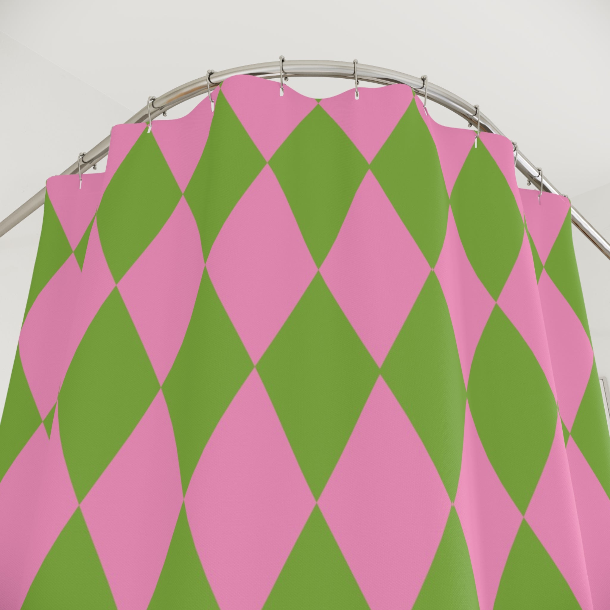 Harlequin Pink Green Bath Shower Curtain