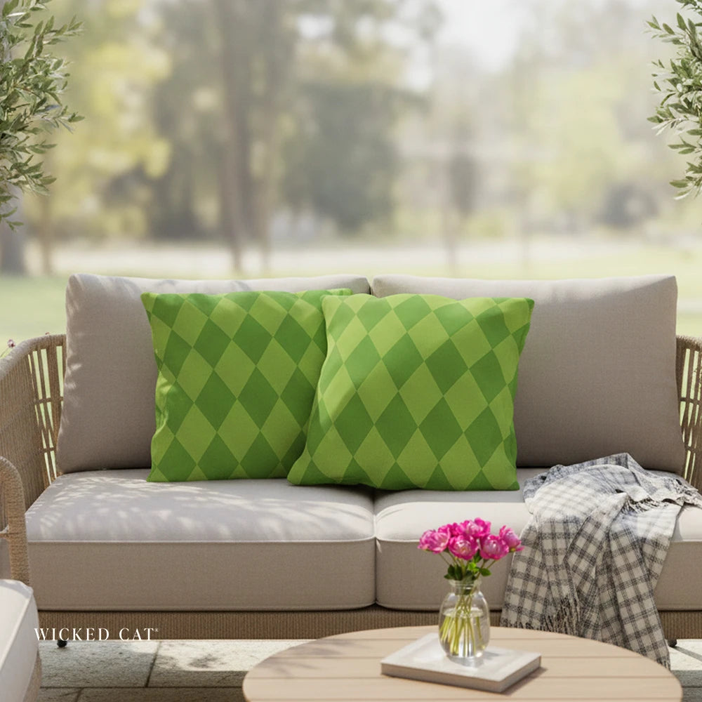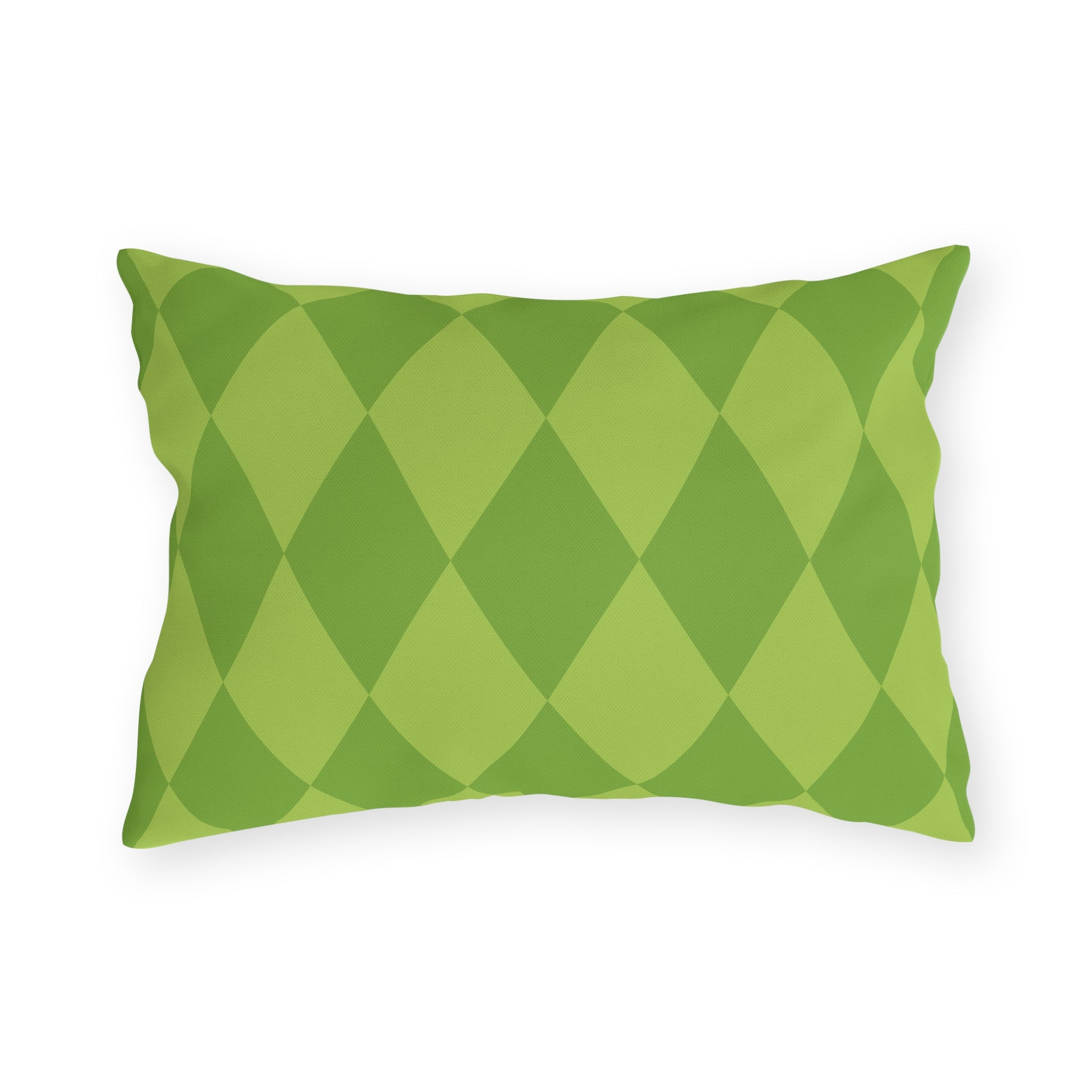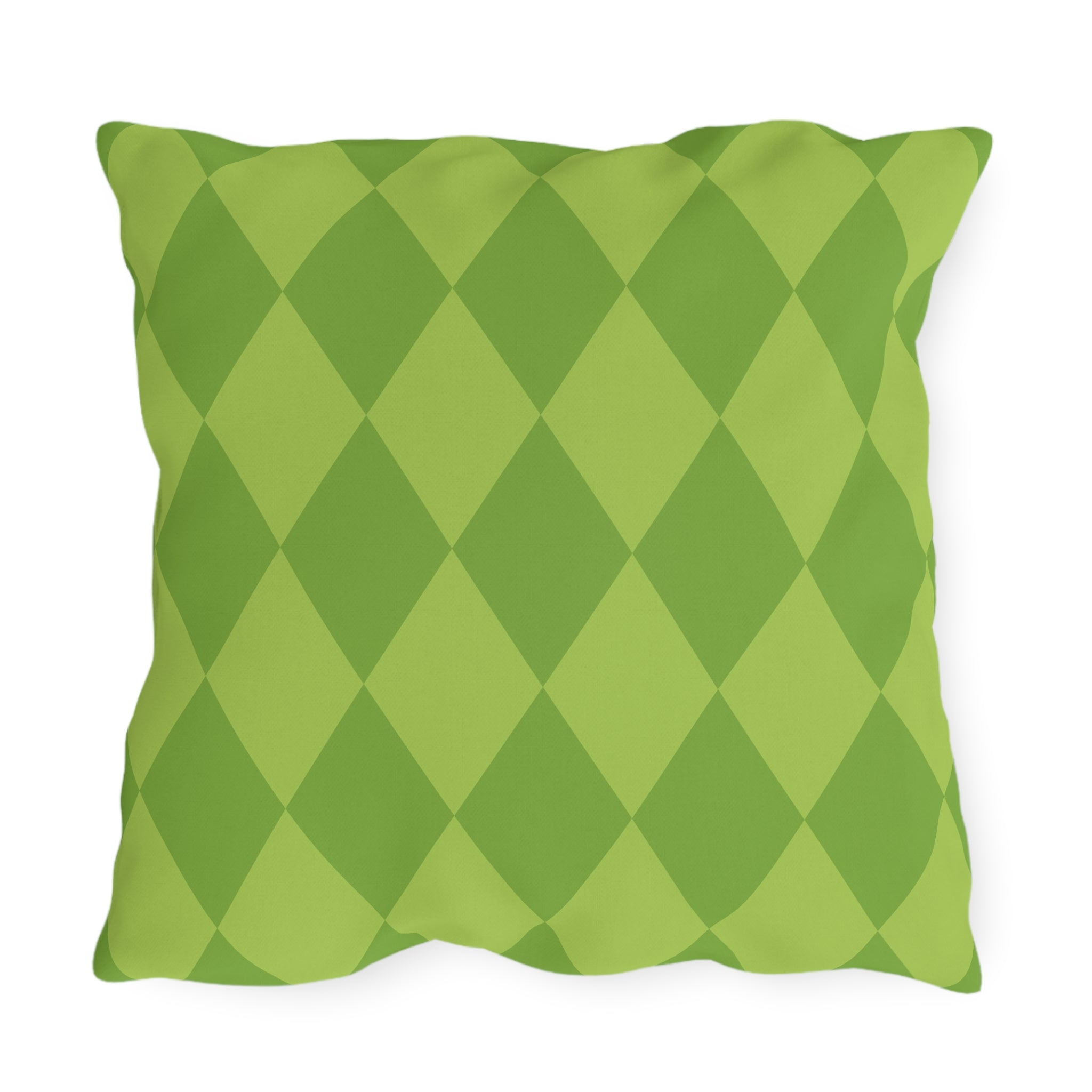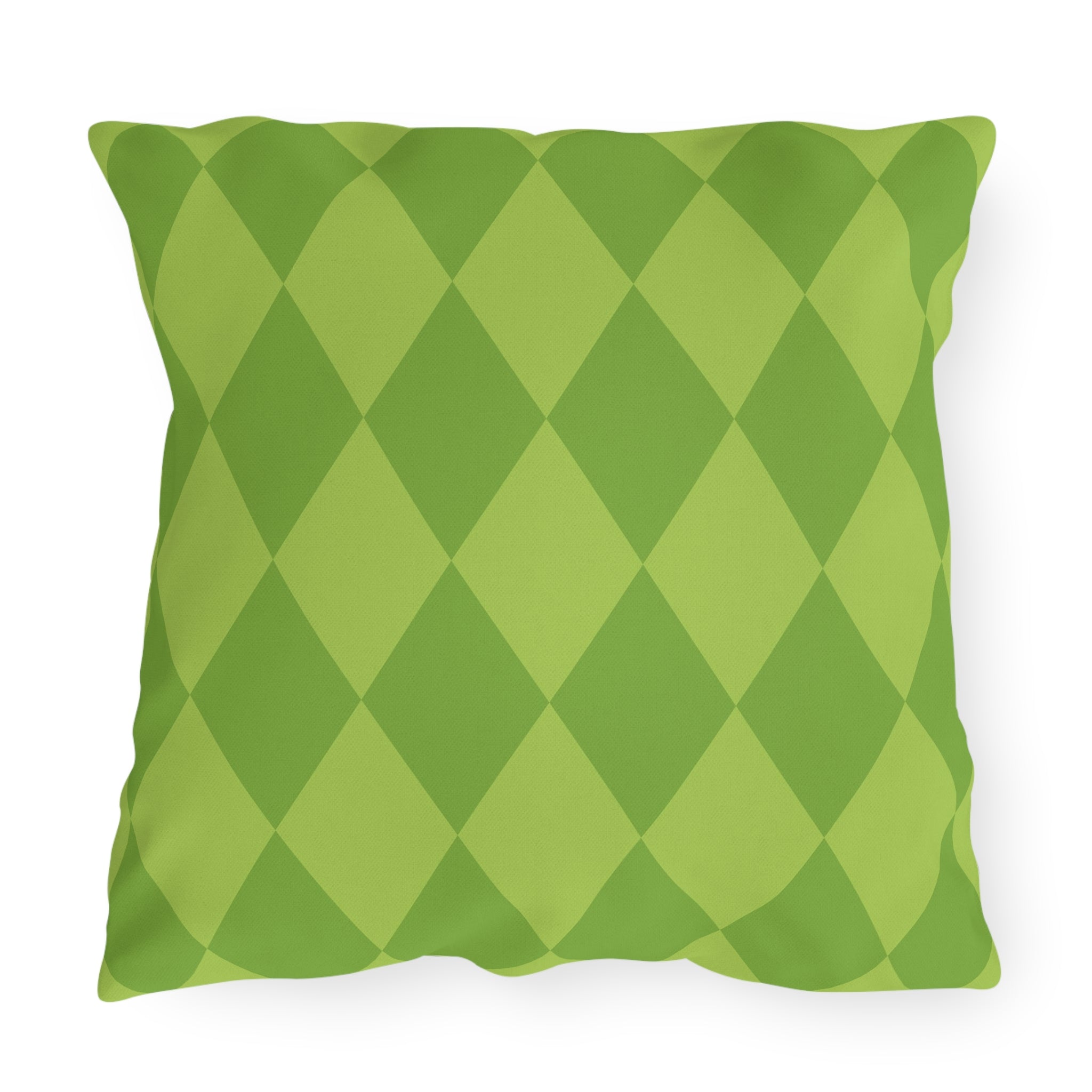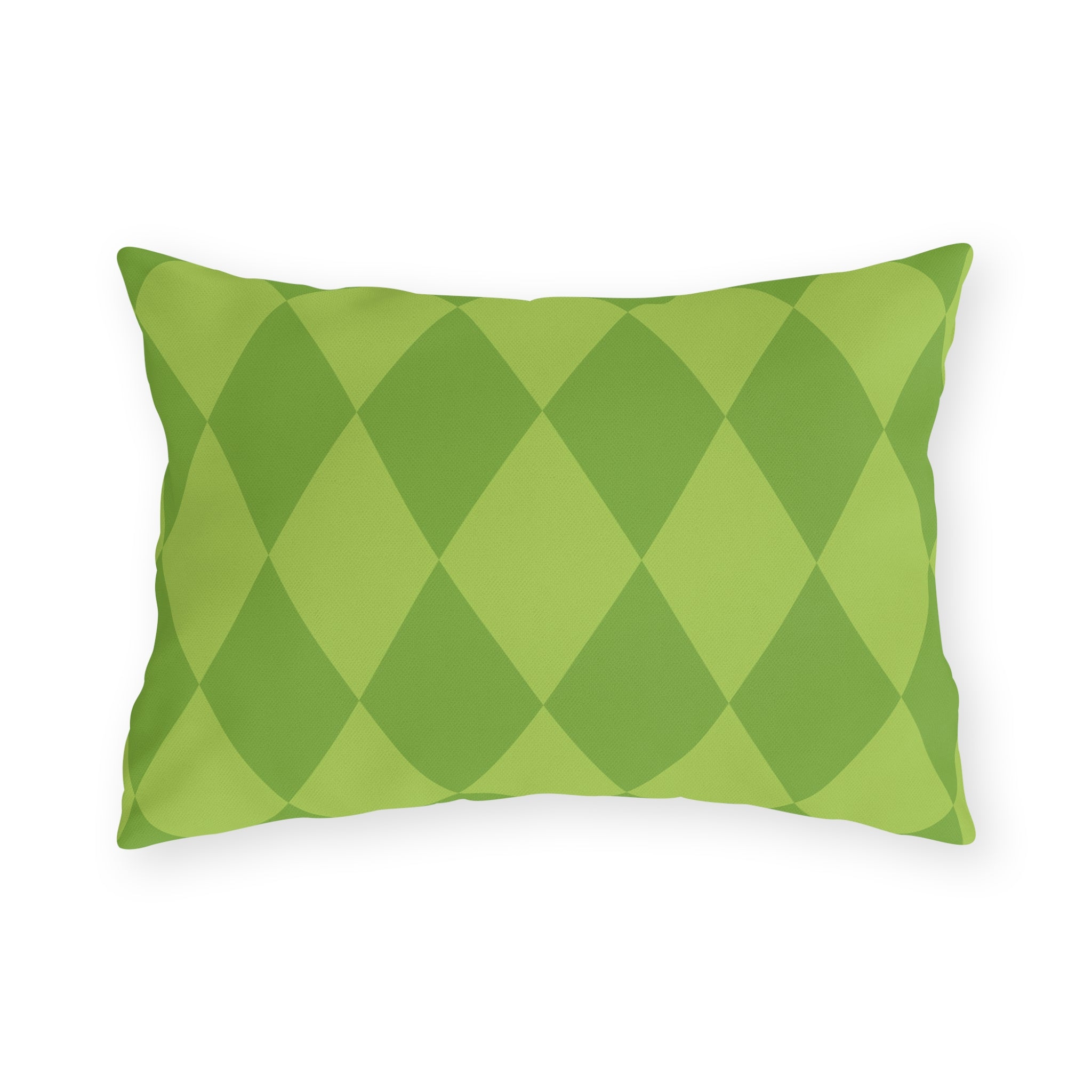 Bold and playful, this reversible indoor/outdoor pillow brings instant personality to any space. Featuring a vibrant harlequin diamond pattern in vibrant green, designed to look just as good on your patio as it does on your sofa. Flip it, style it, love it—because your décor should never be boring (or beige).