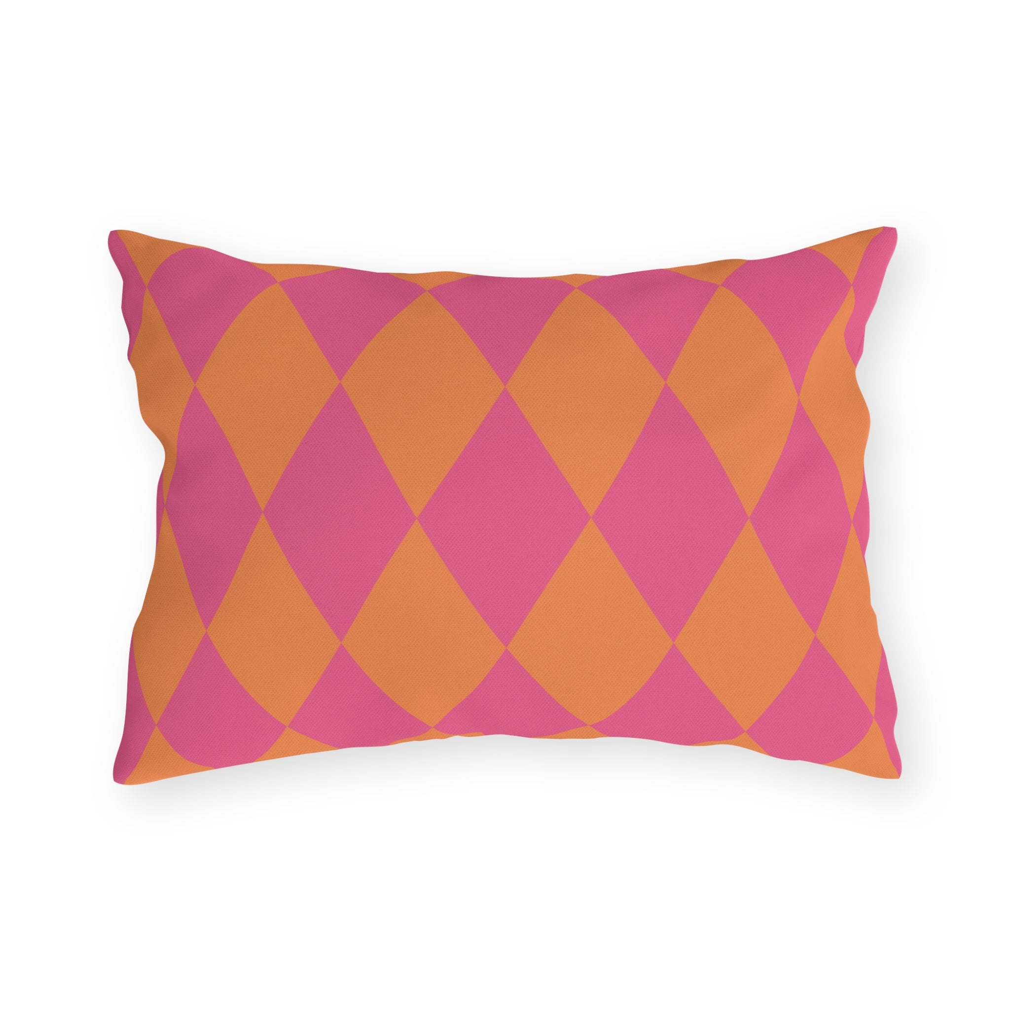 Bold and playful, this reversible indoor/outdoor pillow brings instant personality to any space. Featuring a vibrant harlequin diamond pattern in vibrant orange and pink, it’s designed to look just as good on your patio as it does on your sofa. Flip it, style it, love it—because your décor should never be boring (or beige).