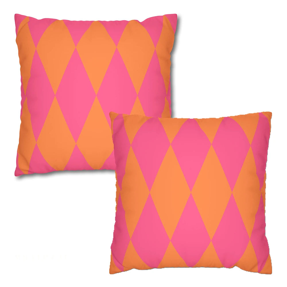 Reversible Pink Orange Harlequin Pillow Cover