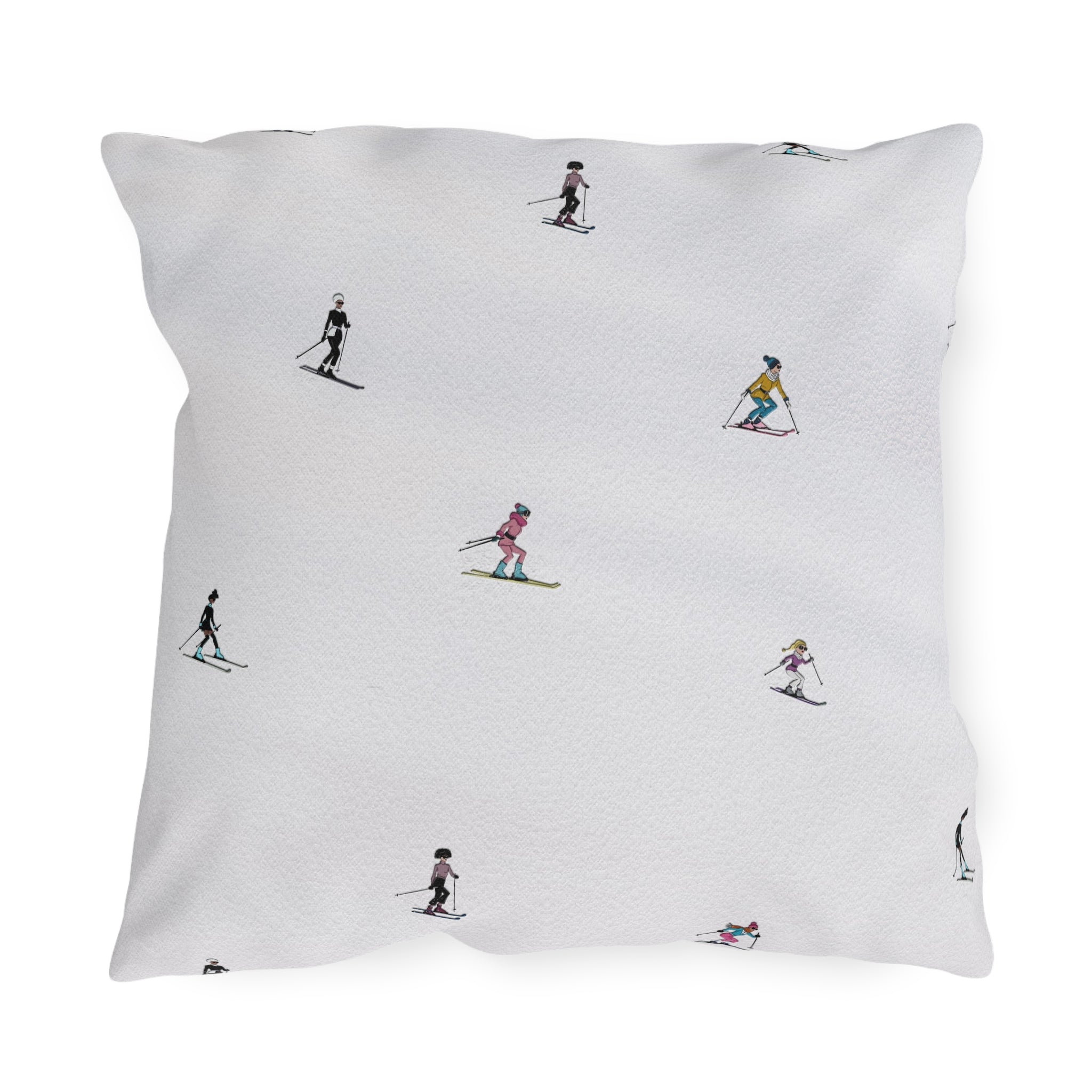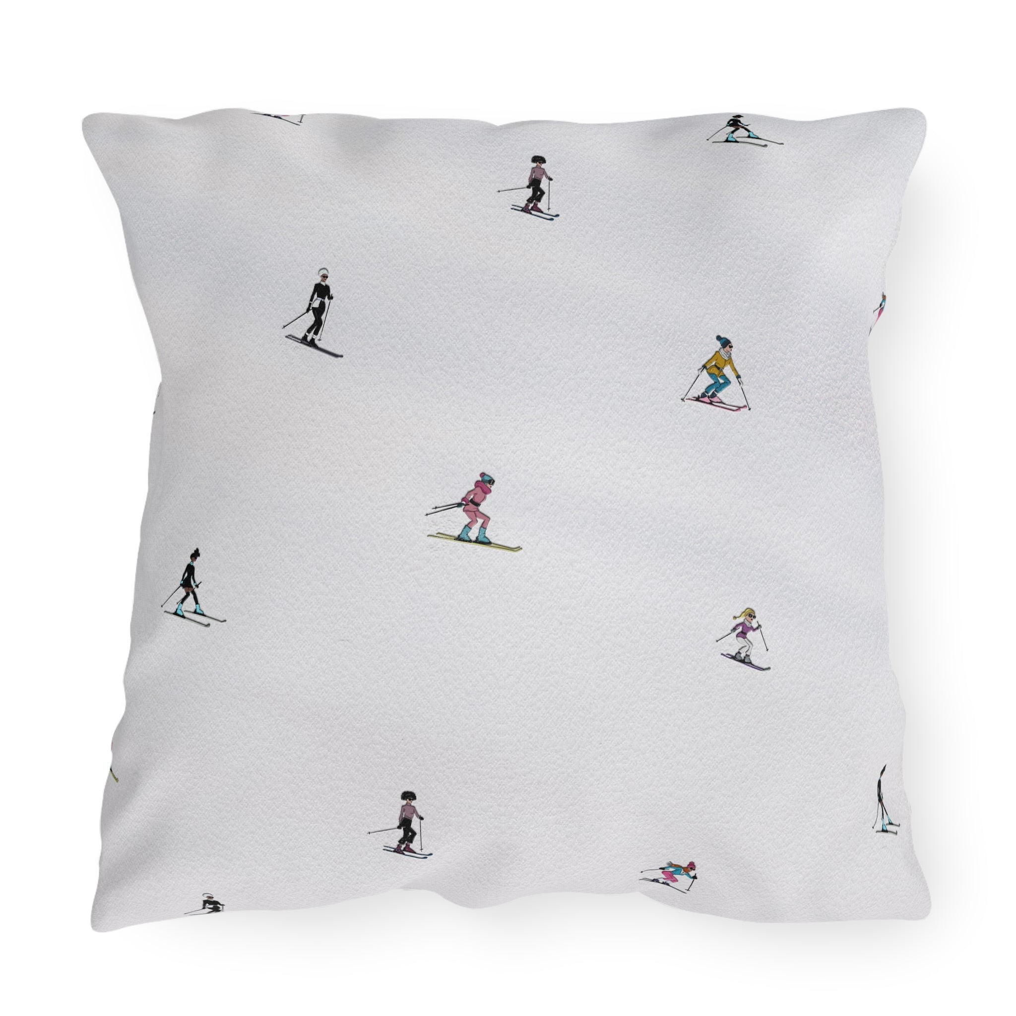 Chic Skiers Indoor Outdoor Patio Pillow