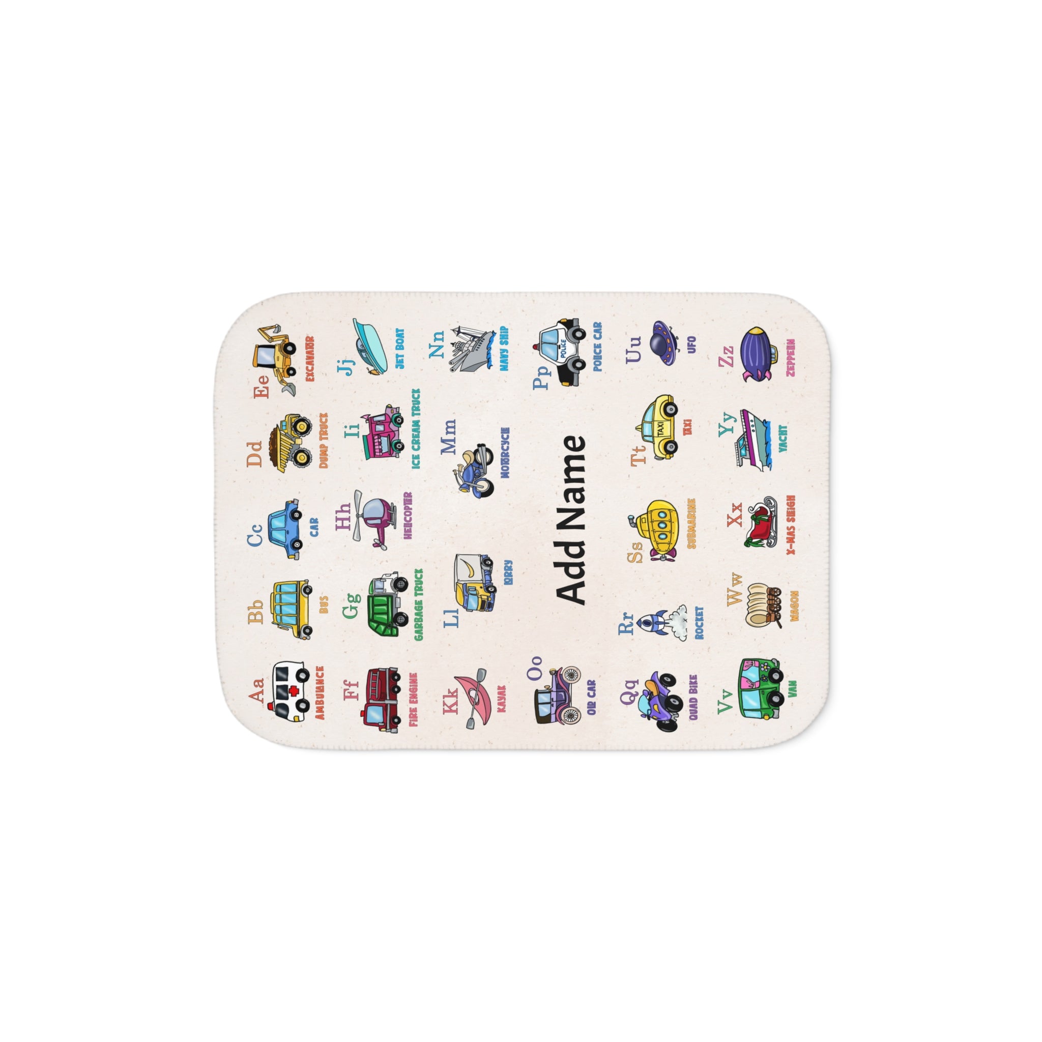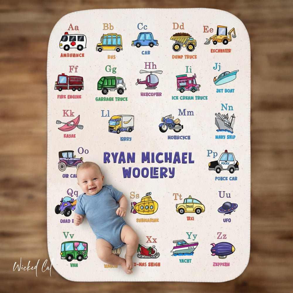 Personalized Transportation ABC Sherpa Baby Blanket