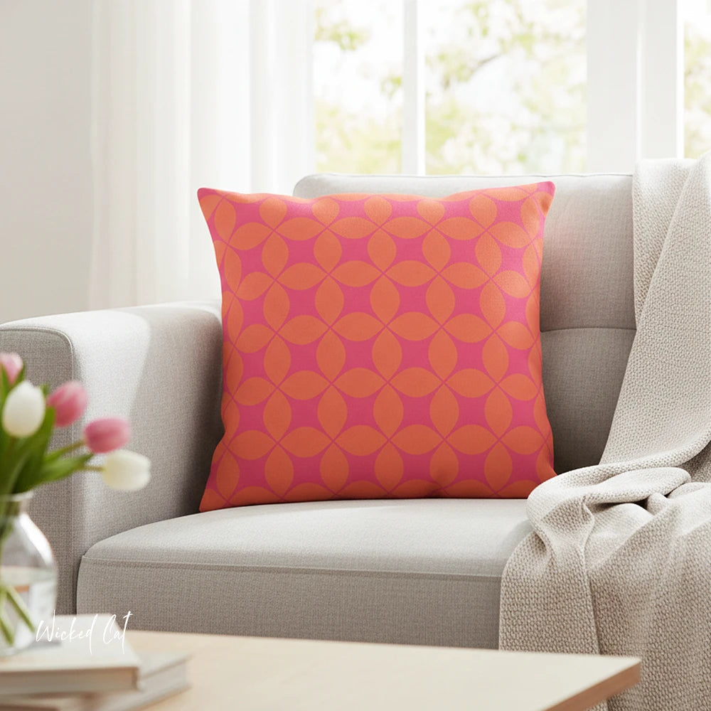 Pink & Orange Art Deco Indoor Outdoor Pillow